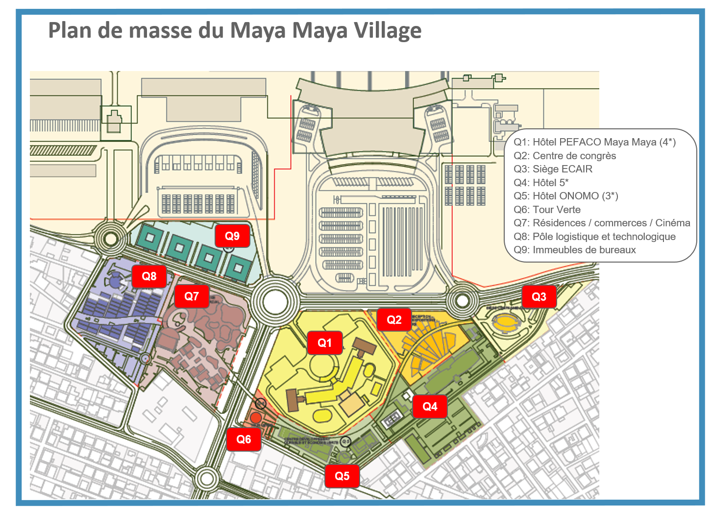 Le projet de village aéroportuaire, baptisé Maya Maya Village, est un concept qui vise: